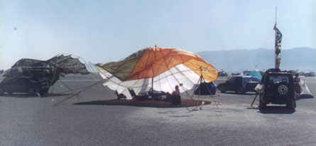 In response to a question posed on a Burning Man email list, Argyre made the following helpful reply. I asked for and received permission to Webify the answer and put it on the Web. The question was how to make a geodesic dome using a parachute.