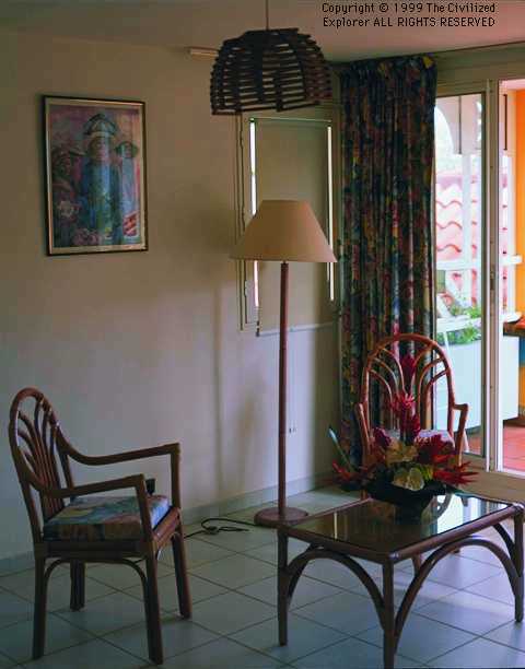 The Hotel Hameau de Beauregard is a little out of the way in the south of Martinique, just a little too far outside Ste. Anne to walk. This is not necessarily a bad thing. The grounds are spacious, and the gardens are well- tended and lush. We were there just before the spring blooms -- another week or two, our guide lamented.