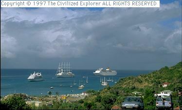 We spoke with a restaurateur in Gustavia, who we were surprised to find opening his restaurant for lunch. He was adamant that St. Barth should not become another St. Martin with t-shirt shops and fast- food restaurants. But he ruefully admitted that Hurricane Luis destroyed the tourist season in 1995 - 1996; people who would have come and stayed on the island did not. The only thing that saved his business, he says, were the passengers from cruise ships. He opened for lunch as well as for dinner, and made up the lost trade.